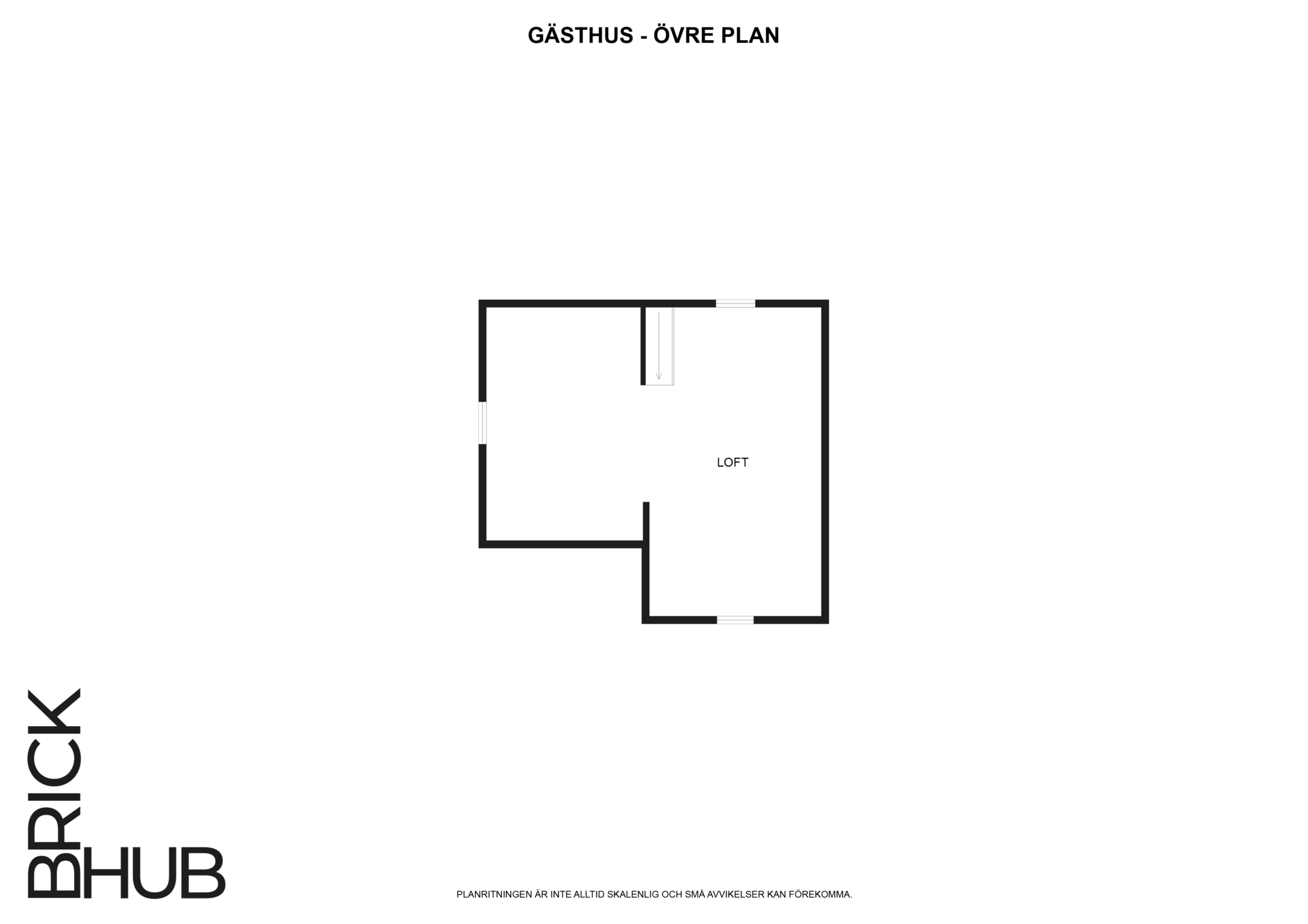 Uppför trappan i vinkel når du sovalkov med plats för dubbelsäng samt en trivsam hörna för umgänge. Gästlägenheten värms av nyinstallerade luftvärme-pump.