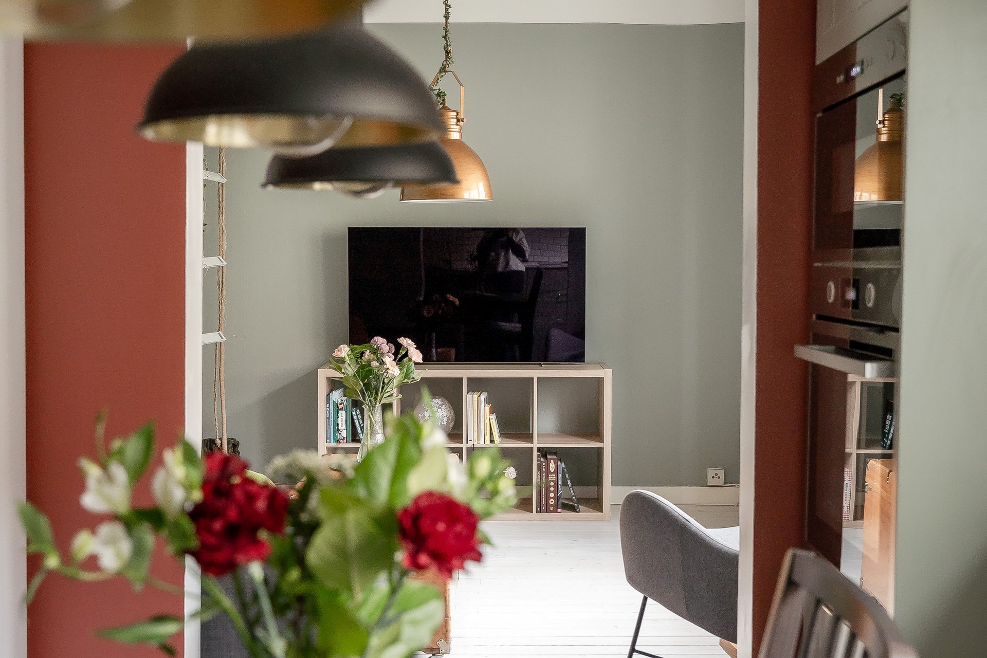 Bostaden erbjuder även en avskild sovalkov som skapar en tydlig plats för vila utan att ta yta från bostadens sociala delar. Planlösningen gör det möjligt att möblera bostaden med separata miljöer för umgänge och privat del.