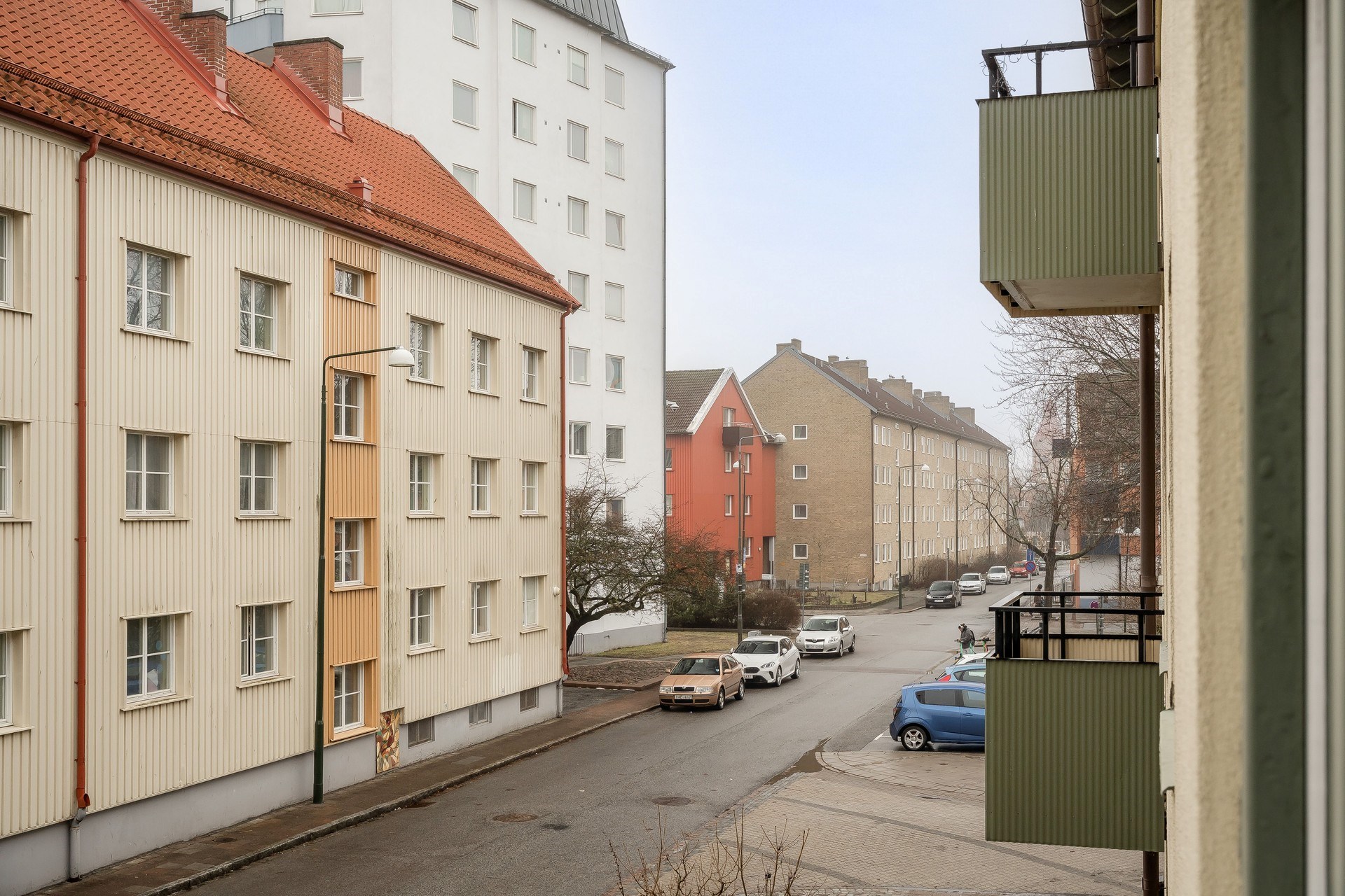 Balkongen ligger i söderläge och erbjuder plats för mindre sittgrupp eller cafébord. Här finns en trivsam yta att använda under årets varmare månader.