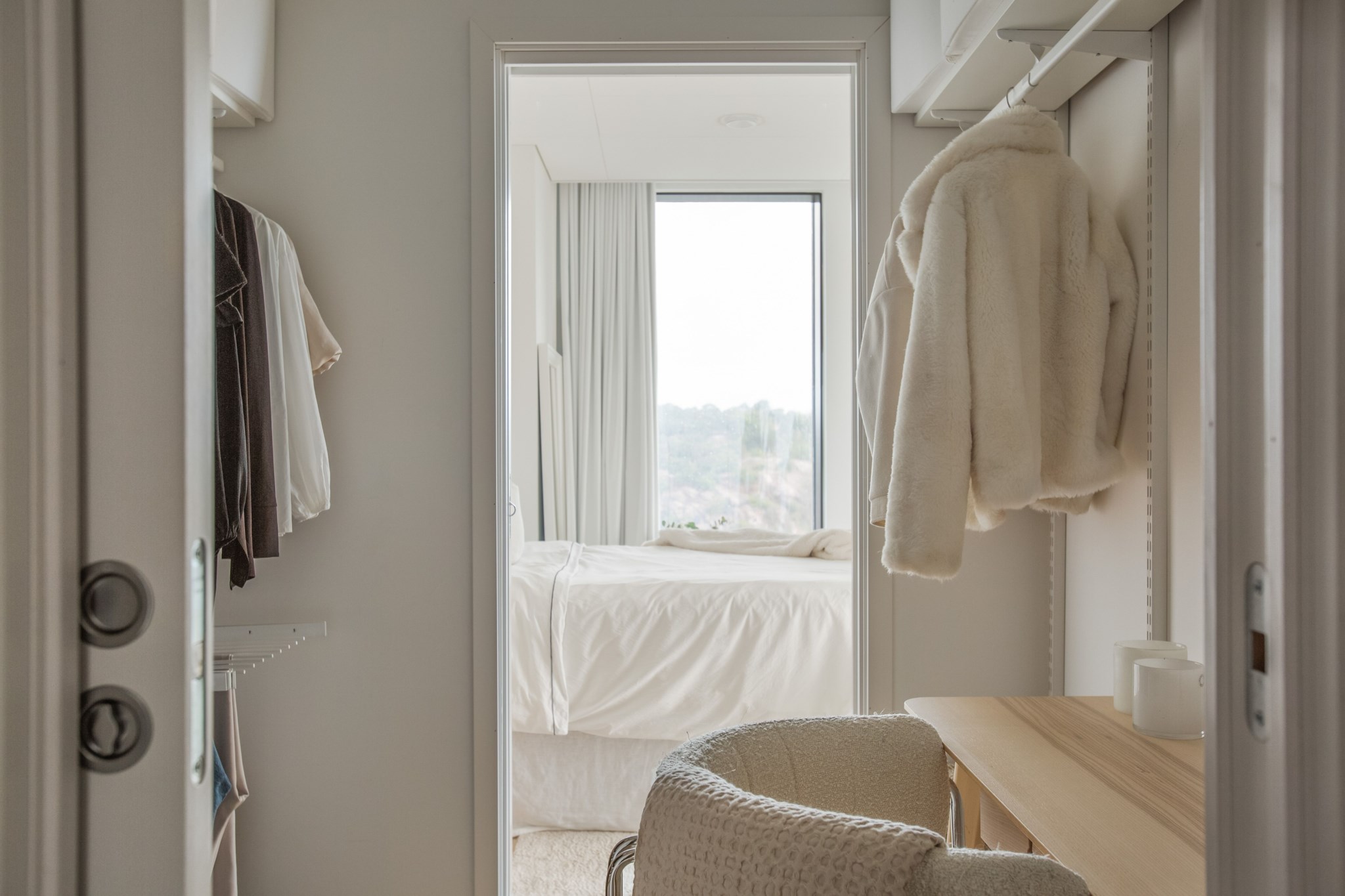 Boende har tillgång till entréns lobby med reception, bio- och aktivitetsrum, en gemensam takterrass med trädgård och sociala ytor.