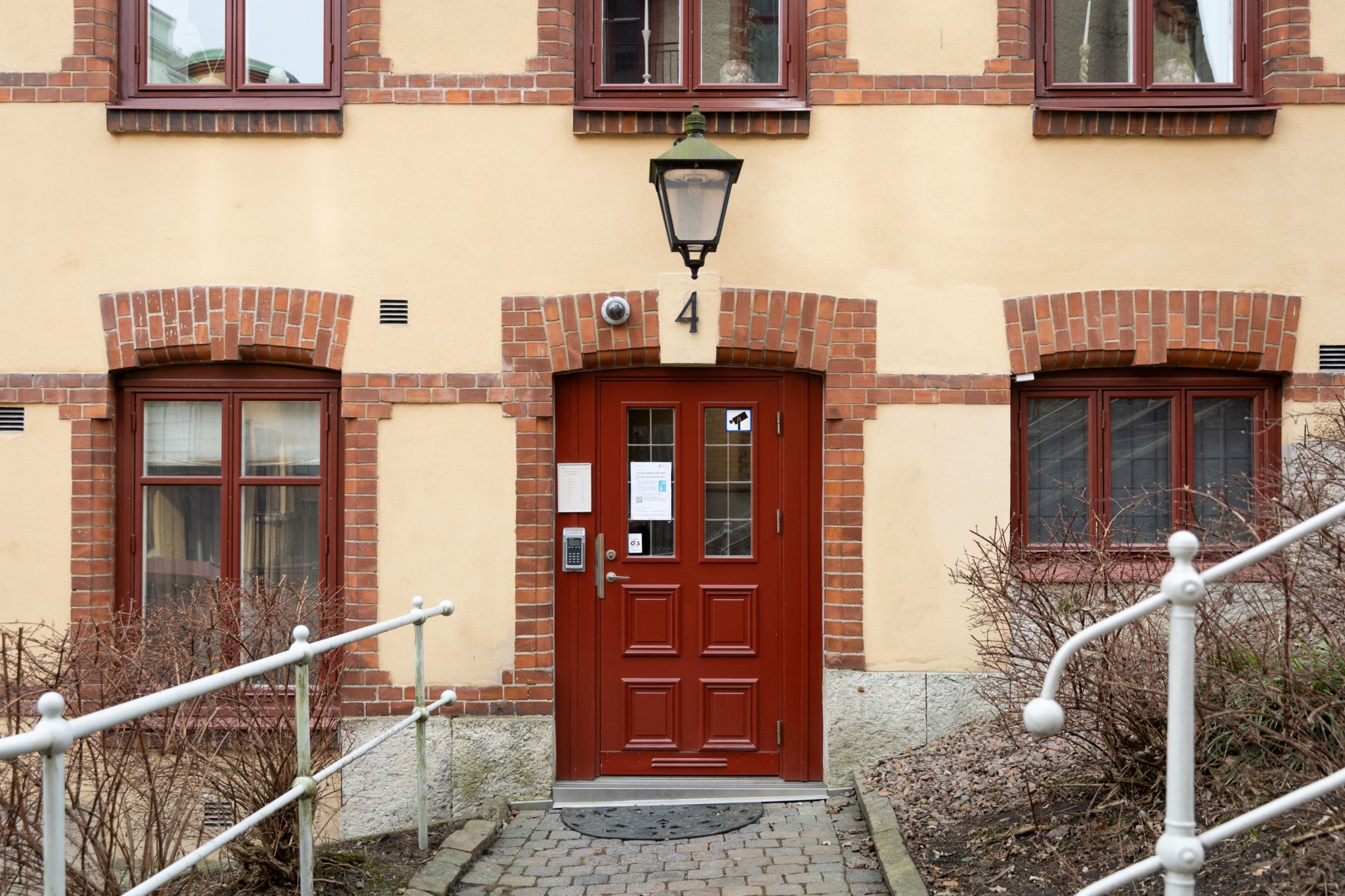 Parkettgolv och ljusbeiga målade väggar. Plats för avhängning i garderob.