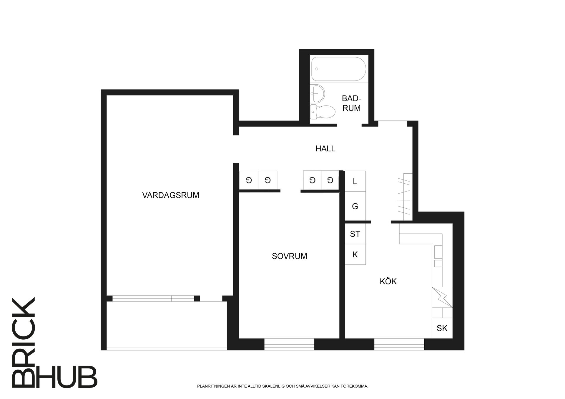 Vardagsrummet utgör bostadens naturliga samlingspunkt och erbjuder plats för både soffgrupp och matplats. Härifrån nås den inglasade balkongen som förlänger vistelseytan och kan nyttjas från tidig vår till sen höst. Sovrummet är rofyllt placerat och rymmer både dubbelsäng och förvaring, medan köket är separat med goda arbetsytor och plats för mindre matbord. Planlösningen skapar en tydlig uppdelning mellan sociala ytor och privata delar, vilket ger ett funktionellt boende för både vardag och helg.