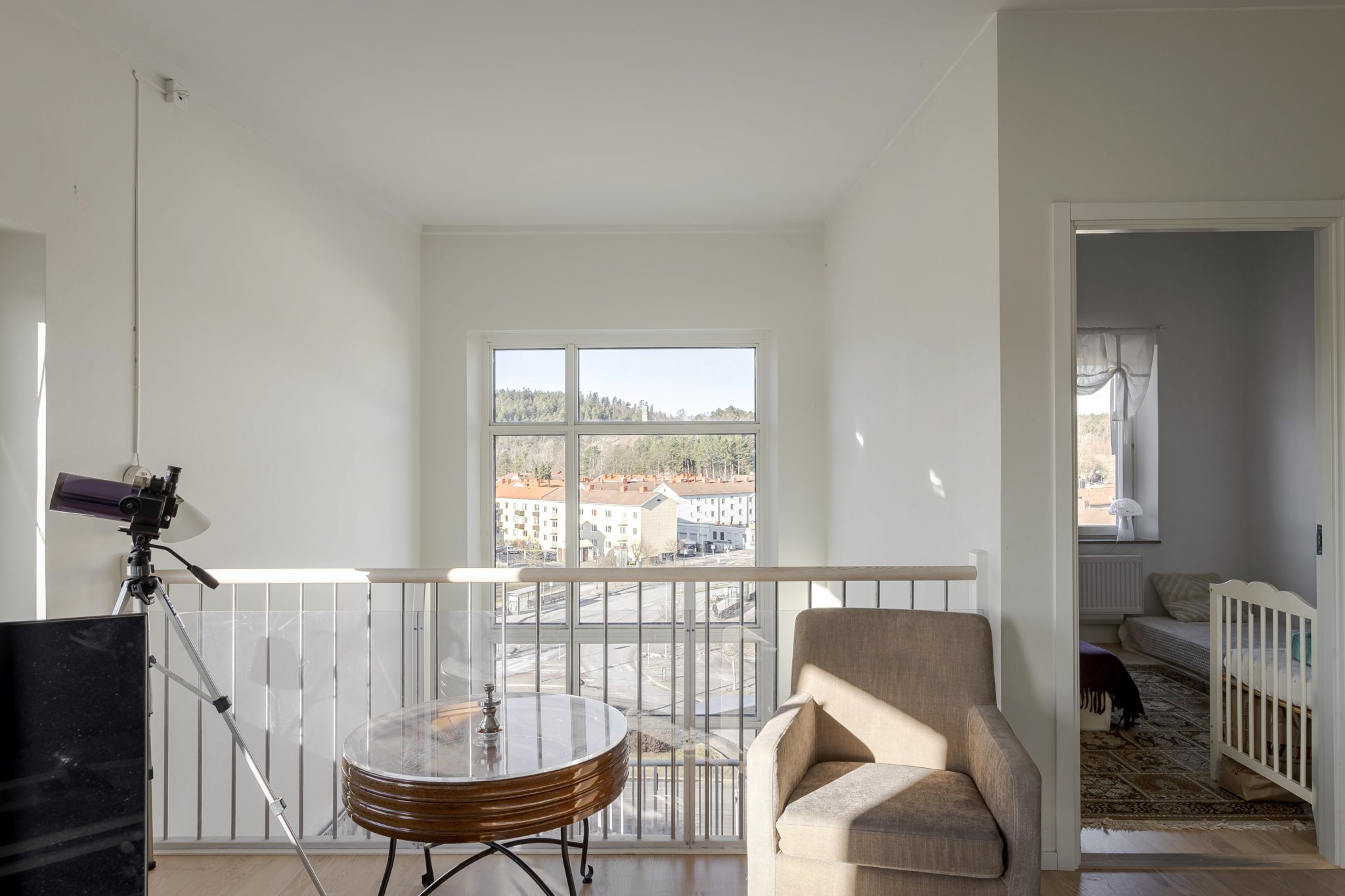 Välkommen till denna unika villa på taket, 6:a om 123 kvm där rymd och komfort möts. Lägenheten i två plan erbjuder känslan av en villa på höjden med 270° vyer, två egna ingångar och ingen insyn. En stor fördel är att det inte finns någon insyn. På entréplanet möts du av ett imponerande vardagsrum med fem meter i takhöjd och öppen planlösning mot köket vilket gör rummet perfekt för sociala tillställningar. Mastern har en egen balkong i västerläge med sol större delen av dagen och en svårslagen utsikt över Bellevue. Med fyra sovrum, två stora terrasser och gott om förvaring erbjuder lägenhet ett hem som passar både familjer och den som uppskattar extra utrymme.